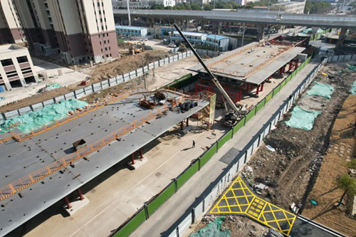 項(xiàng)目現(xiàn)場(chǎng)正在進(jìn)行2.6公里綜合管廊施工。為減少對(duì)周邊商戶影響,同時(shí)保障附近琴斷口水廠生產(chǎn),項(xiàng)目對(duì)涉及該段管廊采取頂管式工藝施工,以減少大開(kāi)挖對(duì)周邊居民生活帶來(lái)的不便,其他具備條件施工段正采用明挖方式全面抓緊實(shí)施中。