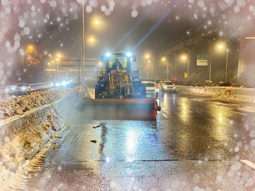 為確保三環(huán)線正常交通通暢,公司全面吹響抗擊冰雪“集結(jié)號(hào)”,成立專項(xiàng)工作專班,質(zhì)量安全部負(fù)責(zé)現(xiàn)場(chǎng)統(tǒng)籌工作,市政工程管理部、總工辦、合約管理部、所屬基建公司抽調(diào)精兵強(qiáng)將參與組織協(xié)調(diào),調(diào)度各參與單位想方設(shè)法加大人員、物資和設(shè)備的投入力度,聯(lián)合出擊,做到“點(diǎn)位有人清、區(qū)域有人管、上下一盤棋、并肩戰(zhàn)冰雪”,在全長(zhǎng)28公里的三環(huán)線北段上共同開展融雪除冰“大會(huì)戰(zhàn)”,全力保障三環(huán)線道路通行順暢。