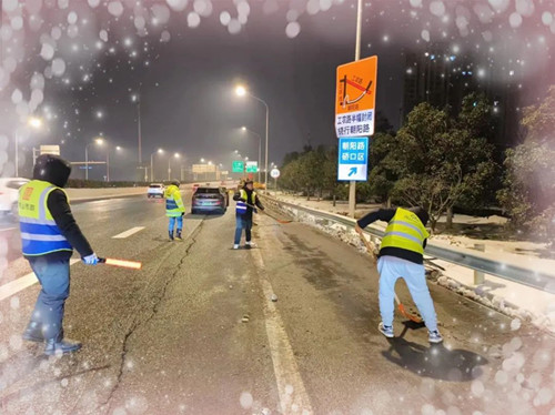 2月2日至6日,我市持續(xù)遭遇凍雨、暴雪極端天氣,給城市的交通出行帶來了今冬以來的最大挑戰(zhàn)。面對(duì)惡劣天氣,橋建集團(tuán)積極響應(yīng)市城投集團(tuán)開展我市重點(diǎn)路段鏟雪除冰“大會(huì)戰(zhàn)”號(hào)召,以雪為令、聞雪而動(dòng),立即啟動(dòng)融雪防凍應(yīng)急預(yù)案,第一時(shí)間召集各作戰(zhàn)單位和相關(guān)部門,實(shí)時(shí)發(fā)布指令,安排部署冰雪天氣應(yīng)急處置工作,同冰雪進(jìn)行不分晝夜的鏖戰(zhàn),持續(xù)開展三環(huán)線北段(長(zhǎng)豐橋至天興洲大橋)的融雪除冰工作,確保三環(huán)線北段交通順暢。