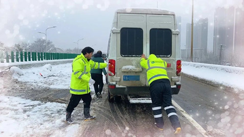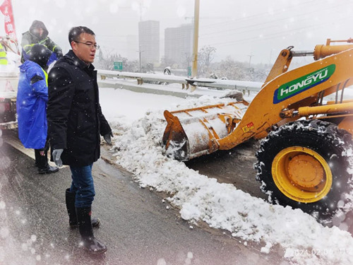 為了打好融雪攻堅(jiān)戰(zhàn),公司領(lǐng)導(dǎo)干部帶頭沖鋒一線,晝夜奮戰(zhàn),既當(dāng)好動(dòng)員部署的“指揮官”,又當(dāng)好抓落實(shí)的“戰(zhàn)斗員”。自2月3日凌晨武漢市低溫雨雪冰凍災(zāi)害應(yīng)急響應(yīng)級(jí)別由Ⅳ級(jí)提升至Ⅲ級(jí)以來,公司主要領(lǐng)導(dǎo)、分管領(lǐng)導(dǎo)和同志們一道始終在項(xiàng)目現(xiàn)場(chǎng)日夜鏖戰(zhàn),身體力行,始終沖鋒在融雪抗冰保暢的最前端、第一線,現(xiàn)場(chǎng)查看值班值守、人員配置及抗冰物資儲(chǔ)備準(zhǔn)備情況,督促撒布機(jī)、鏟車、人員全力投入融雪除冰工作,連續(xù)四個(gè)晚上未回家,腳上的鞋襪被雪浸濕也顧不上回家換;公司負(fù)責(zé)的路段現(xiàn)場(chǎng),到處都是橋建人浴“雪”奮戰(zhàn)忙碌的身影,融雪除冰工作群里的消息,從白天一直閃爍到天亮;天寒地凍,他們頂風(fēng)冒雪奮戰(zhàn)最前沿,面頰被凍得通紅,眉毛、睫毛上結(jié)滿了冰晶也沒有一句怨言,以強(qiáng)烈的責(zé)任擔(dān)當(dāng)和行動(dòng)自覺踐行黨員干部沖鋒在前、戰(zhàn)斗在前的精神風(fēng)貌。