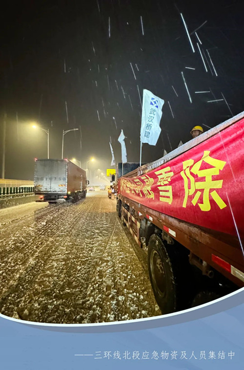 2月3日深夜,市城投集團(tuán)公司動員所屬單位緊急開展我市重點(diǎn)路段鏟雪除冰“大會戰(zhàn)”。其中,三環(huán)線主要聯(lián)系我市各大工業(yè)組團(tuán)及中小型經(jīng)濟(jì)開發(fā)區(qū)、新發(fā)展區(qū),承擔(dān)著春節(jié)物質(zhì)運(yùn)輸保供的重要功能。按照部署,橋建集團(tuán)負(fù)責(zé)三環(huán)線北段(長豐橋漢口段起點(diǎn)至天興洲大橋漢口段起點(diǎn))共約26.1公里的鏟雪除冰任務(wù)。