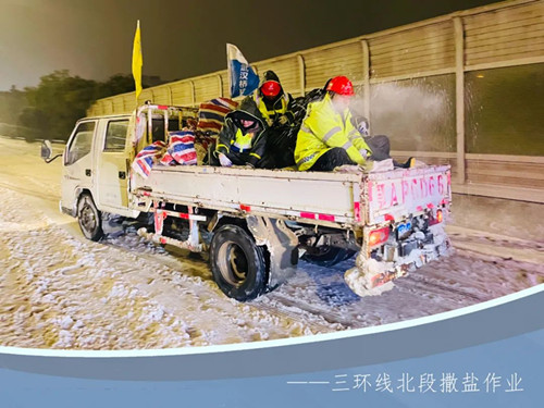 截止2月4日21:00,橋建三環(huán)北融雪除冰作業(yè),累計投入人員342人次,撒布機(jī)11臺,鏟車29臺,輔助車50臺,拋灑融雪劑123噸。目前,融雪除冰隊(duì)伍仍在持續(xù)工作,全力以赴戰(zhàn)風(fēng)雪、保暢通、護(hù)平安。