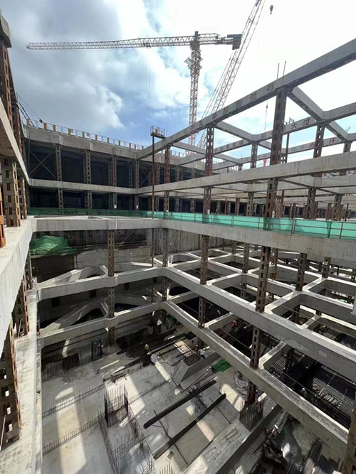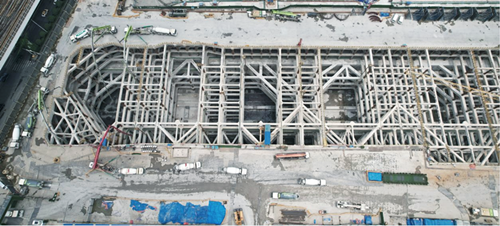 二七路過江通道車站段位于漢口濱江商務(wù)區(qū)核心范圍內(nèi),為二七路過江通道與地鐵新港西延線合建段,其主線起于解放大道東側(cè),止于沿江大道盾構(gòu)工作井,全長550米,包括車站段、明挖區(qū)間段、盾構(gòu)工作井段等。車站段主體結(jié)構(gòu)采用明挖順作法施工,將主體結(jié)構(gòu)分成底板、側(cè)墻、中板、頂板等部位,逐次有序開展施工。為確?;影踩?,保證施工質(zhì)量,項(xiàng)目結(jié)構(gòu)底板分為15倉(其中車站段7倉,區(qū)間段及工作井8倉),采用跳倉施工,每倉混凝土連續(xù)澆筑時(shí)間控制在36個(gè)小時(shí)以內(nèi),有效確保了工程質(zhì)量。