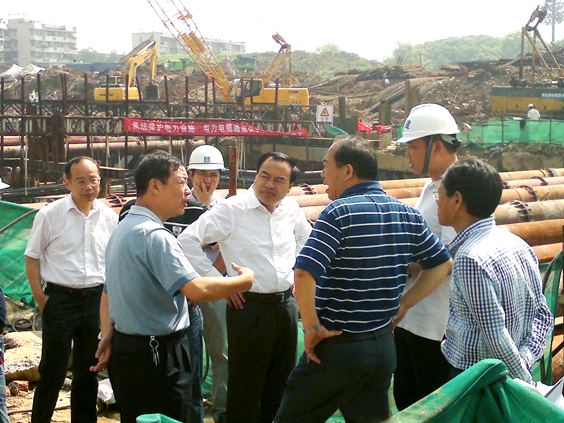 5月16日下午,唐良智市長(zhǎng),胡立山副市長(zhǎng),王繼連副秘書長(zhǎng)及市重點(diǎn)辦負(fù)責(zé)人前往梨園通道工程檢查。在施工現(xiàn)場(chǎng),唐良智市長(zhǎng),胡立山副市長(zhǎng)察看了施工情況,聽取了市城投集團(tuán)關(guān)于施工進(jìn)展情況的匯報(bào),對(duì)加快通道建設(shè)、保證按期通車提出了要求。同時(shí),對(duì)關(guān)系到通道周邊排水的管道改造作了限時(shí)完成的指示。
