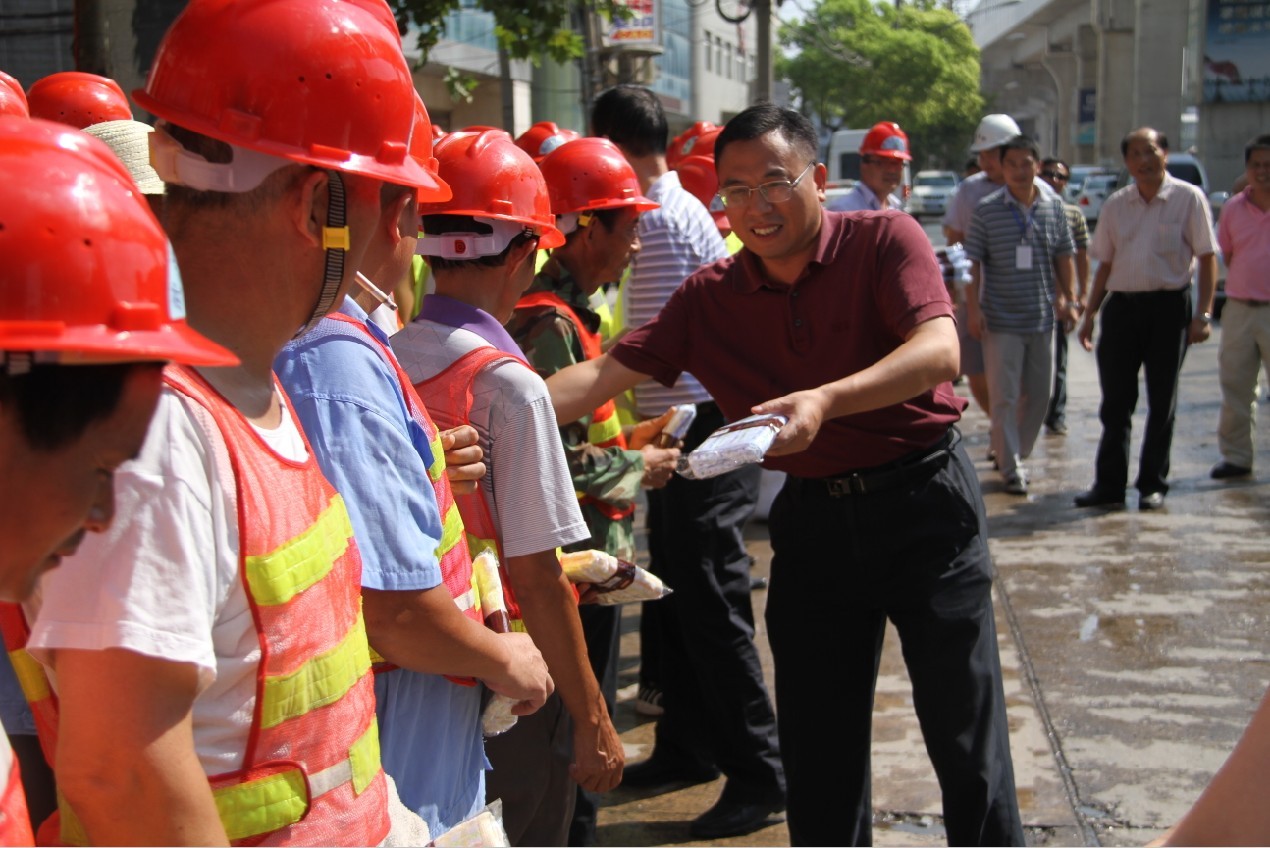 8月1日下午,城投集團(tuán)董事長雷德超、副總經(jīng)理余靖玲一行來到我公司代建的解放大道下延線項(xiàng)目施工現(xiàn)場,慰問奮戰(zhàn)在高溫下的一線員工,并送去了慰問品。