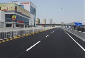 該工程由市城投集團(tuán)公司負(fù)責(zé)建設(shè),全長(zhǎng)554.25米,標(biāo)準(zhǔn)橋?qū)?span lang="EN-US">17米,采用鉆孔灌注樁基礎(chǔ),矩形(工字型)承臺(tái),雙柱式花瓶型橋墩。 實(shí)現(xiàn)了王家灣十字路口東西方向(十里鋪至黃金口)的立式交通。開放交通后將實(shí)現(xiàn)漢陽(yáng)大道路段無(wú)紅燈快速通過(guò)王家灣十字路口,將極大提高漢陽(yáng)大道車輛通行能力,有效改善王家灣區(qū)域的交通現(xiàn)狀。