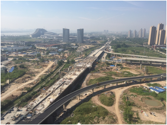 楊泗港快速通道四新段國(guó)博跨線橋主體結(jié)構(gòu)日前貫通